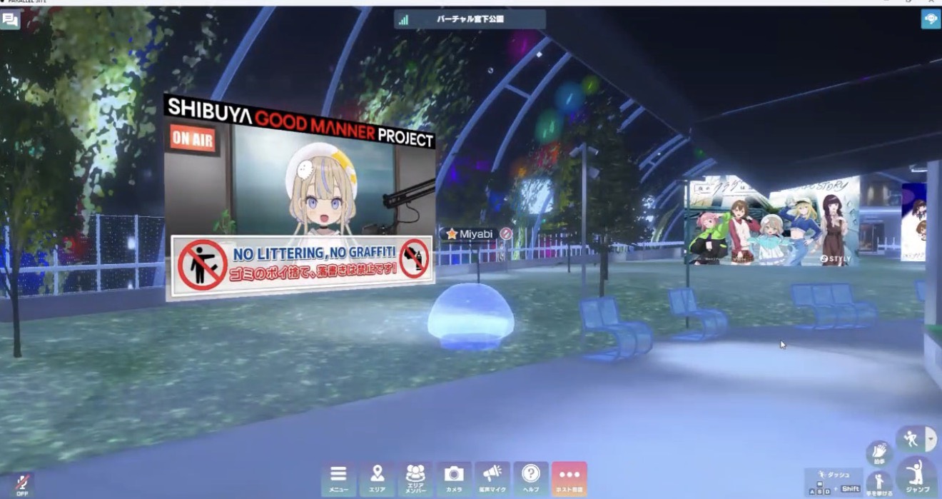 また、今回はバーチャル宮下公園でも啓発動画を配信!バーチャル空間の中でもユーザー向けの啓発を行いました!(動画は11月17日まで公開中)