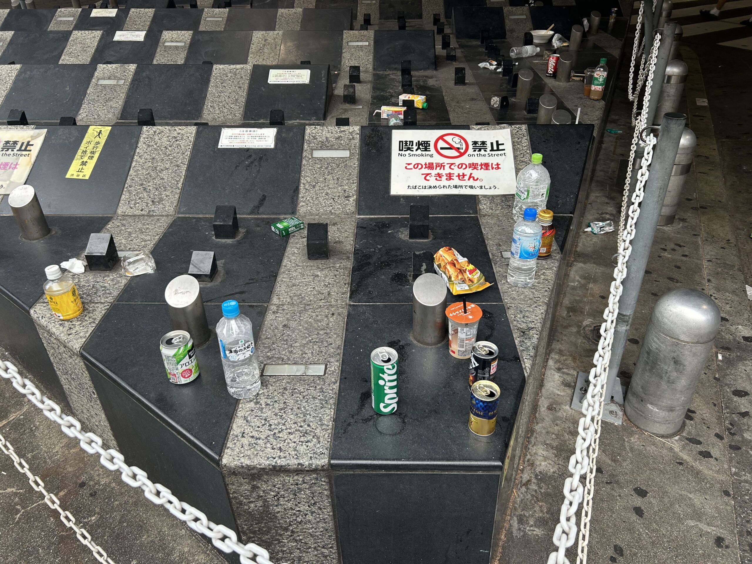 清掃前は、ペットボトルや缶、タバコの箱などが放置されていました。