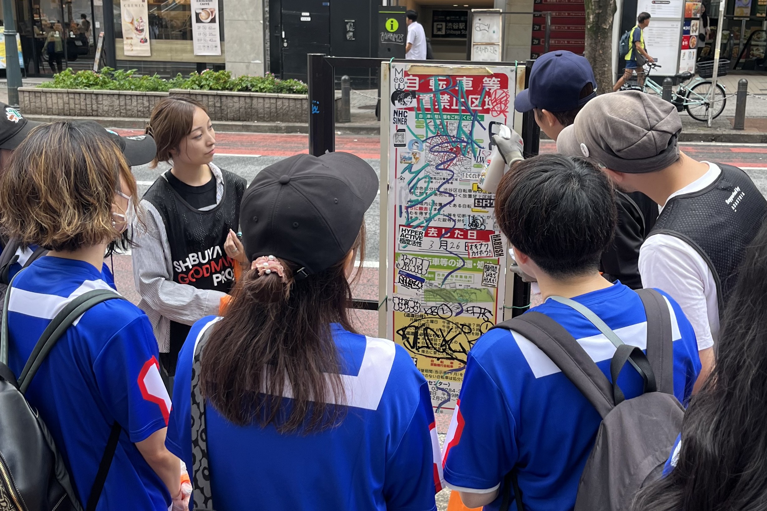 親子での参加者も多く、子どもたちが「楽しかった」と笑顔で話してくれました。参加者の中には、「時間を延長してもっと落書きを消したい」と言ってくださる方もいらっしゃいました。参加者同士の会話も生まれ、「みんなで渋谷の街をきれいにすると、とてもすがすがしい気持ちになった」と感想を伝えてくれました。
